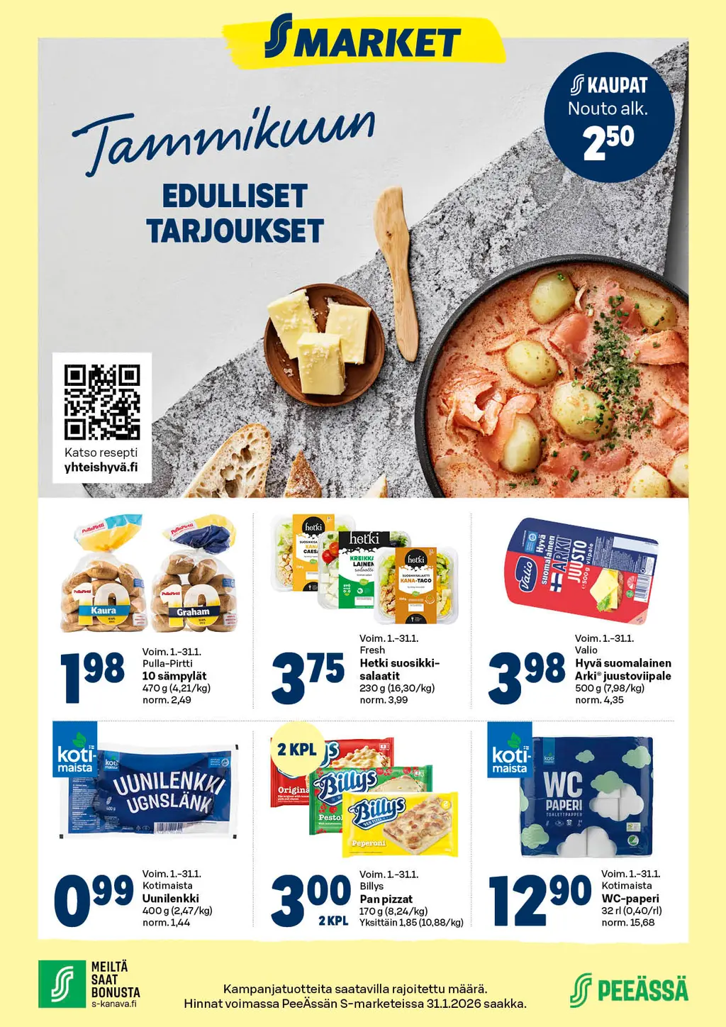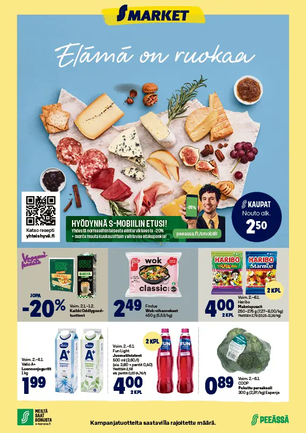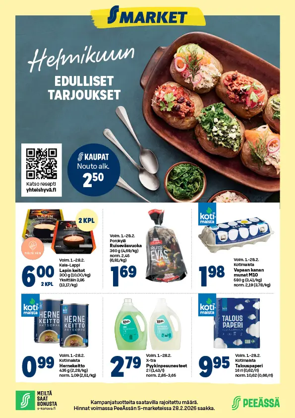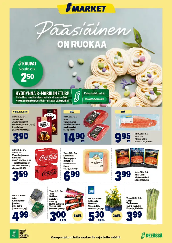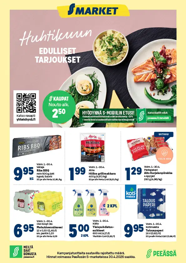 Tältä sivulta löydät PeeÄssän S-markettien ilmoitukset. Mikäli sivu on tyhjä, S-marketeilla ei ole voimassa olevaa ilmoitusta. Ajankohtaiset S-mobiiliedut näet täältä.